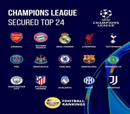 根據(jù)歐冠聯(lián)賽階段的規(guī)則,排名前八的球隊(duì)可直接晉級(jí)16強(qiáng),9-24名的球隊(duì)則需參加附加賽。
