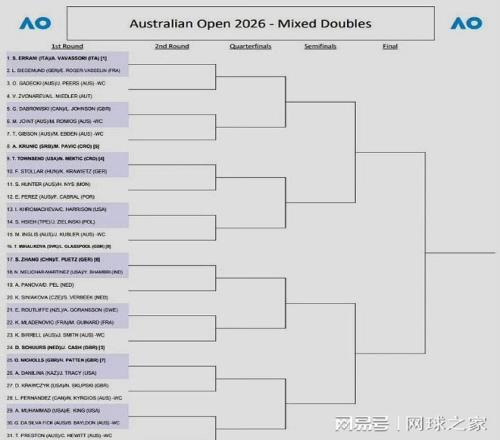 另外,北京時間昨晚,澳網(wǎng)公布了混雙簽表,中國老將張帥搭檔德國人普埃茨出戰(zhàn),首輪對陣梅里查爾/班布里。