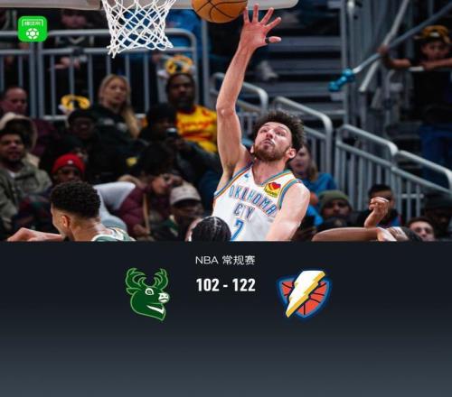 北京時間1月22日NBA 常規(guī)賽,密爾沃基雄鹿對陣俄克拉荷馬雷霆。半場雄鹿51-69雷霆,最終雄鹿102-122雷霆。