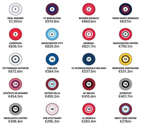 金錢聯(lián)賽:皇馬笑傲世界,英超壟斷第二梯隊