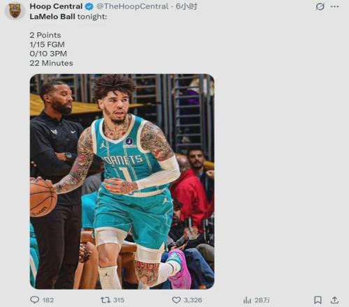北京時(shí)間1月22日,NBA常規(guī)賽:黃蜂主場87-94不敵騎士。黃蜂球員拉梅洛-鮑爾打出本賽季最差的一場比賽:替補(bǔ)出戰(zhàn)22分18秒,投籃15中1,三分10中0,得到2分5籃板7助攻2搶斷1蓋帽2失誤4犯規(guī),正負(fù)值-16。