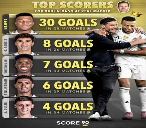 哈維·阿隆索執(zhí)教期間隊內(nèi)射手榜