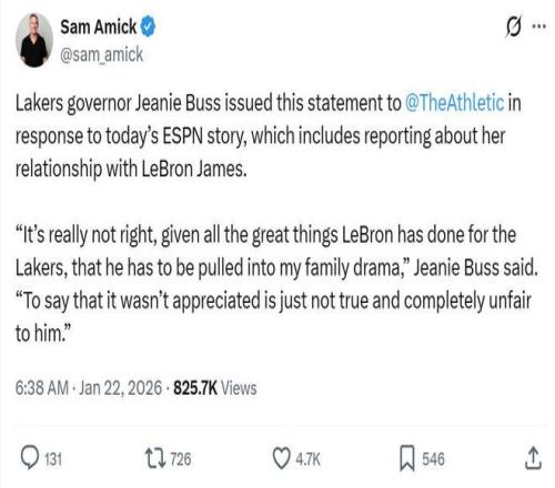 事件起因是ESPN記者Baxter Holmes突然撰寫了一篇題為《從巴斯家族內(nèi)斗到湖人隊100億出售》的專題長文披露湖人內(nèi)斗詳情,結(jié)果文中部分提及詹姆斯的內(nèi)容引起社媒熱議。