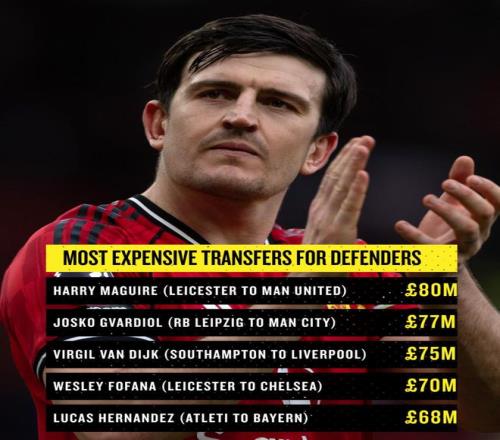 目前的世界紀錄仍屬于哈里-馬奎爾,他在2019年以8000萬英鎊轉會曼聯(lián)。