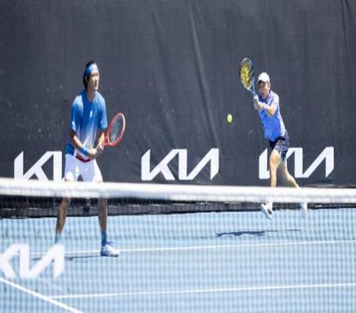 張之臻/商竣程(右)在比賽中。 當(dāng)?shù)貢r(shí)間1月21日,在墨爾本進(jìn)行的2026年澳大利亞網(wǎng)球公開(kāi)賽男雙首輪比賽中,中國(guó)組合張之臻/商竣程1比2不敵拉姆(美國(guó))/艾伯登(澳大利亞)組合,無(wú)緣下一輪。 新華社發(fā)(胡涇辰攝)