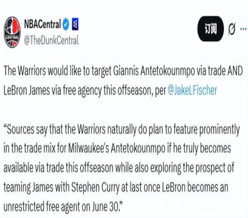 曝勇士今夏將追兩大巨星!全力交易字母哥尋求簽詹姆斯聯(lián)手庫里