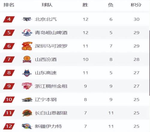 目前前8的排名其實(shí)變化不大,主要是第9-12的排名競爭比較激烈,新疆現(xiàn)在是2連勝暫時(shí)來到了第12,反彈勢頭強(qiáng)勁,近期有望把吉林、遼寧、寧波拉下去。