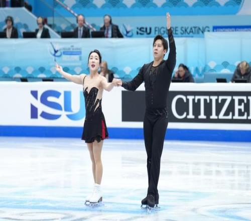 盡管承受著傷病困擾,但這對(duì)北京冬奧會(huì)冠軍組合還是以76.02分刷新他們?cè)诒举惣緡H比賽中的短節(jié)目最好成績(jī)。