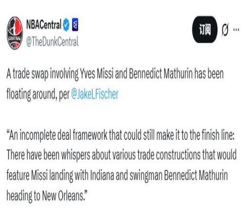 步行者鵜鶘談判交易!核心框架馬瑟林換米西另有兩隊(duì)也想搶中鋒