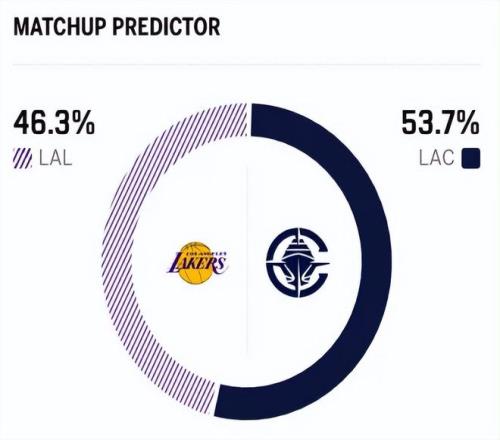 賽前,美媒ESPN對(duì)本場(chǎng)比賽進(jìn)行了勝率預(yù)測(cè),湖人勝率僅有46.3% ,稍占劣勢(shì),快船隊(duì)勝率則為53.7% 。