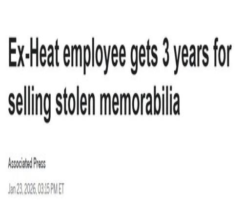 北京時(shí)間1月24日,邁阿密熱火隊(duì)一名前安保人員,因在任職期間盜竊數(shù)百件球員落場(chǎng)版球衣及其他珍貴體育紀(jì)念品,被判處3年聯(lián)邦監(jiān)禁,同時(shí)被勒令賠償近190萬(wàn)美元。