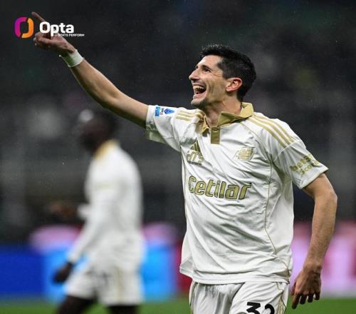 意甲第22輪,比薩客場(chǎng)對(duì)陣國際米蘭,開場(chǎng)不到半個(gè)小時(shí),比薩中場(chǎng)莫雷奧上演梅開二度,成為自2020年的伊布以來,首位意甲開場(chǎng)30分鐘對(duì)國米打入兩球的球員。