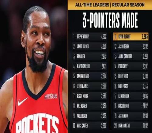 杜蘭特NBA生涯常規(guī)賽三分命中數(shù)超越杰森-特里,升至歷史第11位迎來(lái)里程碑,前一位是飛人卡特。