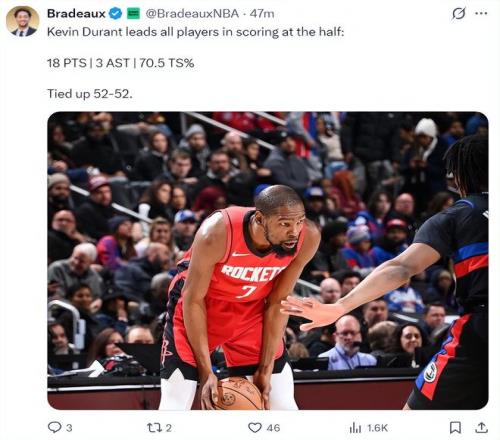 末節(jié)你就看到火箭各種的整活兒,泰特尺一級惡意犯規(guī),小賈吃T,活塞打出11-1的攻防浪潮,杜蘭特連球都沒摸到就崩盤了,烏度卡叫了兩個暫停杜蘭特終于獲得出手機(jī)會連續(xù)3投命中一個幫助火箭穩(wěn)定局勢。小賈1帽1斷1板1傳助力杜皇,KD持球干拔再中,火箭拉開到10分鎖定勝局,活塞不放棄KD被吹兩個三分犯規(guī)很無奈。