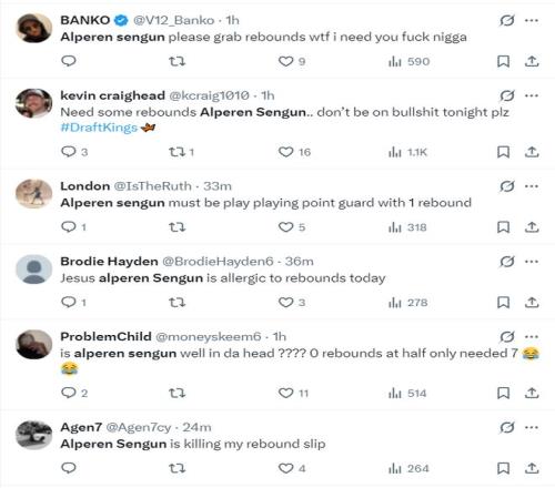 質(zhì)疑NBA的球迷也有:1.NBA這是被操縱了嗎?一個中鋒打了半場沒有籃板球?