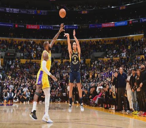 2022年11月29日,作為剛?cè)胄幸粋€(gè)月的新秀,內(nèi)姆布哈德在客場(chǎng)挑戰(zhàn)湖人的比賽中,面對(duì)詹姆斯的防守命中壓哨三分絕殺,一球成名。