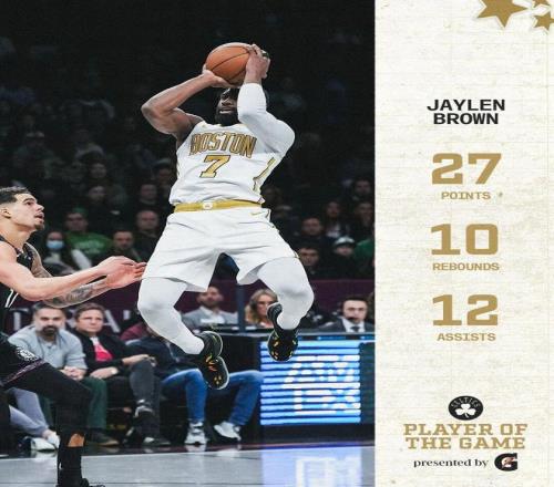 這場凱爾特人贏得是真不容易,雙加時(shí)大戰(zhàn)才艱難戰(zhàn)勝對(duì)手,當(dāng)家球星布朗全場交出27分10籃板12助攻,這也是布朗生涯的第五次三雙。