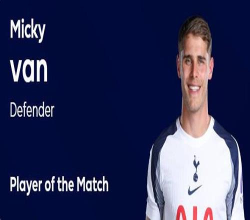 本場比賽,范德芬首發(fā)出戰(zhàn),他在第38分鐘打進(jìn)一球,幫助熱刺取得領(lǐng)先,賽后,他以51%的得票率當(dāng)選英超官方全場比賽最佳球員。
