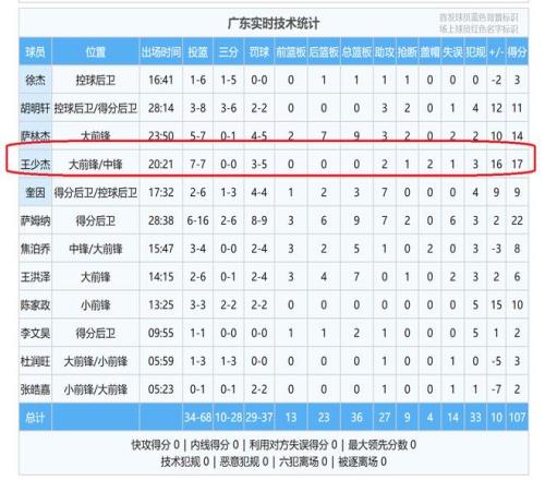 那么,廣東隊為何能夠贏下這場比賽呢?可以說,一個人是息息相關(guān)的,沒錯,他就是內(nèi)線球員王少杰。本場比賽,王少杰首發(fā)出場打得十分活躍,不管是在進(jìn)攻端,還是在防守端,都是打出了十分主動,十分有效。特別是在進(jìn)攻端,打出了超級高水平,7投7中,投籃命中率達(dá)到了百分之百,十分恐怖。
