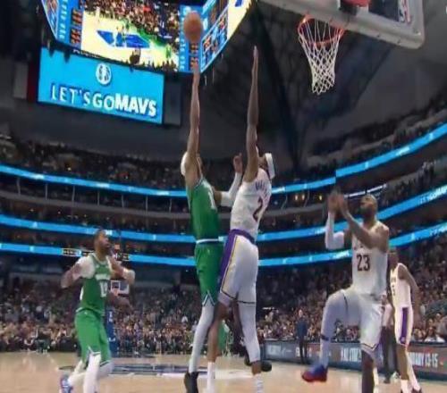 第四節(jié)比賽,威廉姆斯一上來迎著艾頓,打成2+1,幫助獨(dú)行俠90比79,建立起兩位數(shù)領(lǐng)先優(yōu)勢(shì)。馬丁三分命中,93比79湖人被打停。