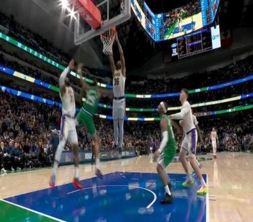 第二節(jié)比賽,雖然湖人這邊有著中鋒艾頓貢獻(xiàn)的“名場(chǎng)面”,在籃下連續(xù)搶到4個(gè)前場(chǎng)籃板,卻離譜地連續(xù)5次放籃不中,但是獨(dú)行俠整體進(jìn)攻受阻,湖人趁機(jī)將分差拉開,半場(chǎng)65比52領(lǐng)先13分。