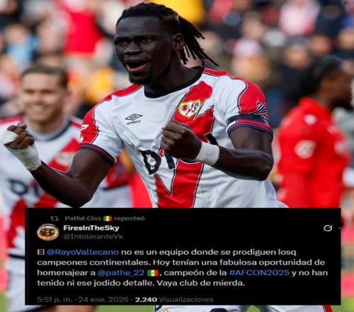 據(jù)《阿斯報》報道,在隨塞內(nèi)加爾贏得非洲杯冠軍后,西斯于本周重返巴列卡斯球場。盡管他在對陣奧薩蘇納的比賽中打入一球,卻未能幫助球隊(duì)取勝。然而,比失利更讓他感到失落的是,俱樂部并未在他回歸時,為他的洲際冠軍榮譽(yù)安排任何致敬儀式。