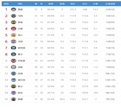 今日比賽后獨(dú)行俠、灰熊排名互換,其他西部球隊排名不變。