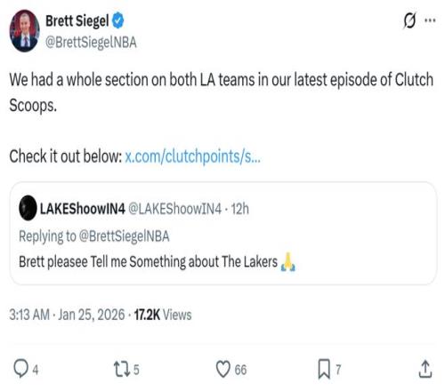 消息來(lái)自于美媒《clutchpoints》名記Brett Siegel,他在社媒與球迷互動(dòng)期間,回答了有關(guān)湖人隊(duì)補(bǔ)強(qiáng)計(jì)劃的問(wèn)題。