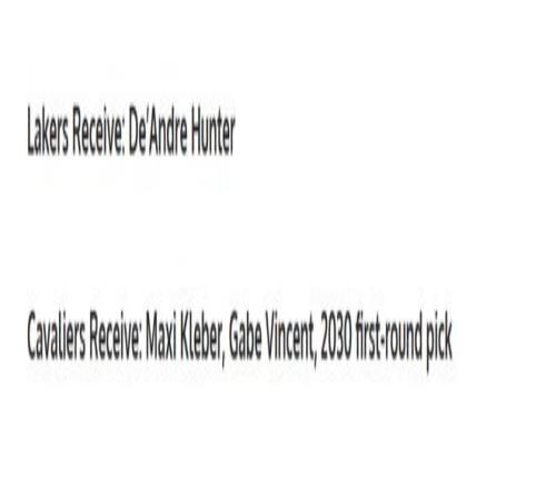 第二筆交易方案則是理想狀態(tài)中的方案,美媒建議湖人隊(duì)3換1拿下亨特,具體方案如下: