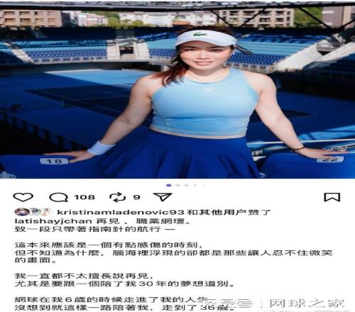 本周相信大家的關(guān)注點(diǎn)都在澳大利亞網(wǎng)球公開賽上,與此同時(shí),中國(guó)臺(tái)北網(wǎng)球選手詹詠然近日在個(gè)人社交媒體平臺(tái)正式宣布退役,結(jié)束其長(zhǎng)達(dá)三十年的職業(yè)網(wǎng)球生涯。
