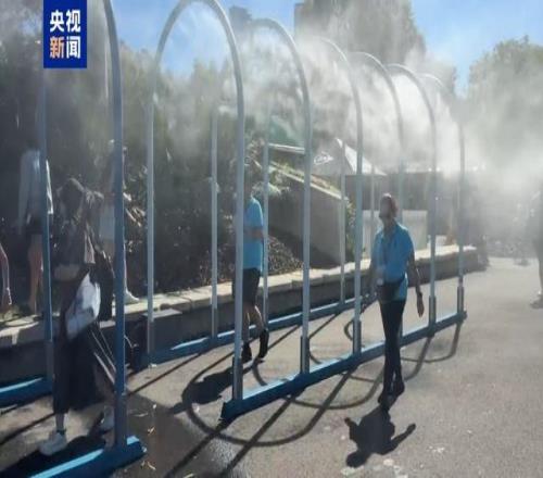 在天氣的“炙烤模式”下,墨爾本公園內(nèi)的很多現(xiàn)場(chǎng)觀眾都聚在了水霧風(fēng)扇和水霧門前降溫,或大口吃起了冰激凌,在高溫中等待復(fù)賽。(總臺(tái)記者 王聰)