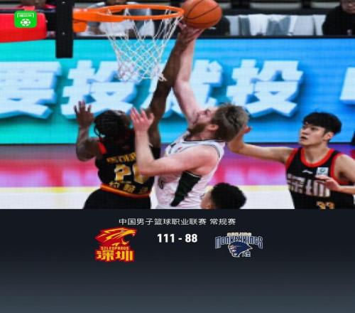 第四節(jié)深圳武子涵拿下10分,同曦杰倫-漢斯拿下8分,最終深圳111-88戰(zhàn)勝同曦