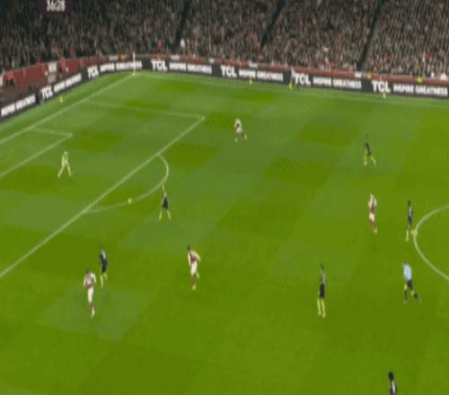 這一場(chǎng)強(qiáng)強(qiáng)對(duì)話開打之后,阿森納就憑借主場(chǎng)之利,大舉壓上給紅魔的后防施壓,第9分鐘特羅薩德就利用角球機(jī)會(huì),完成了一腳禁區(qū)內(nèi)的掃射,但皮球沒有壓住直接飛出底線,5分鐘之后,賴斯反擊中的打門,又被利桑德羅馬丁內(nèi)斯擋出,第18分鐘賴斯前場(chǎng)右側(cè)定位球開出,蘇維門迪極具威脅的頭球,被拉門斯神撲化解。