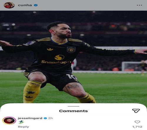 賽后庫尼亞在社媒曬出了自己的慶祝照片,林加德也在社媒積極互動,他回復(fù)了?♂?的表情包。