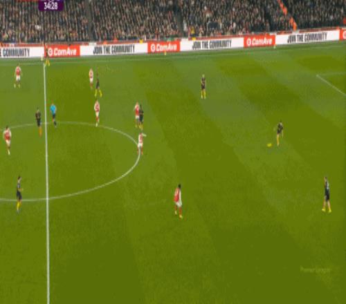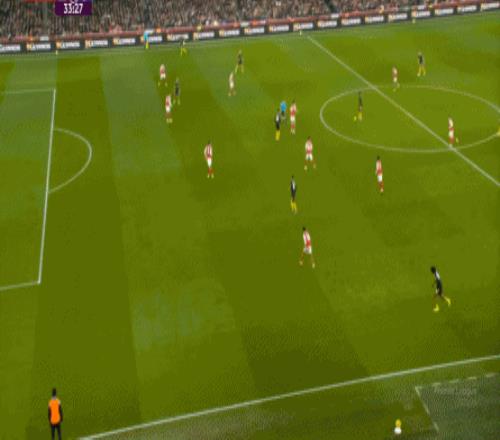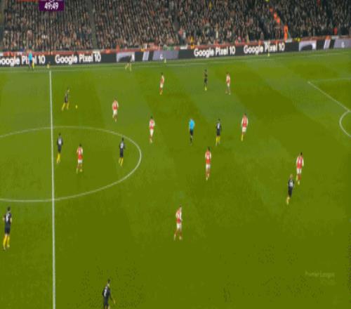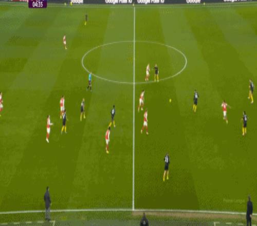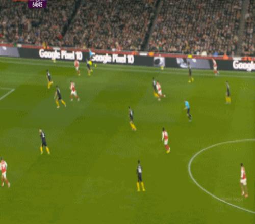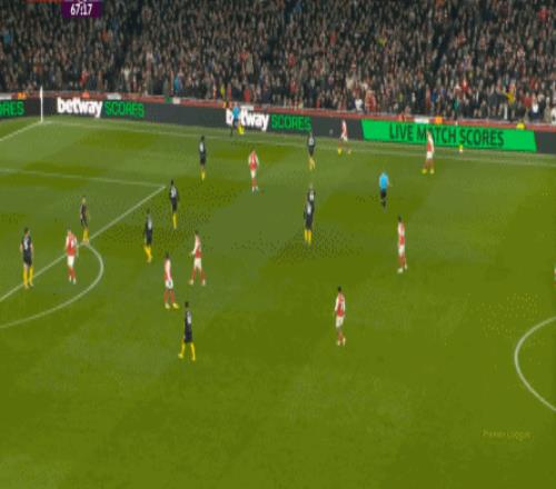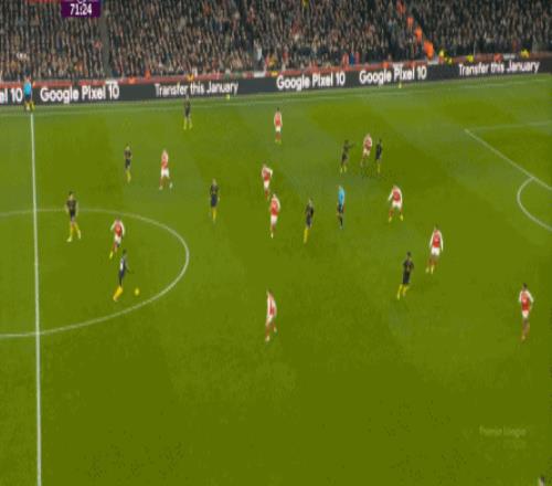你說這有沒有效,當(dāng)然還是有的,比如在陣型拉得更開之后,阿森納通過邊路形成的進(jìn)攻效果確實提升了半個檔次: