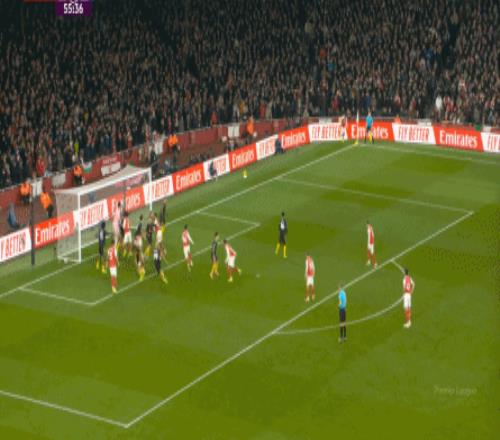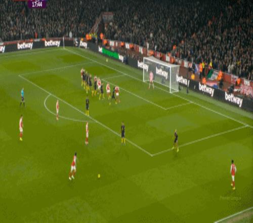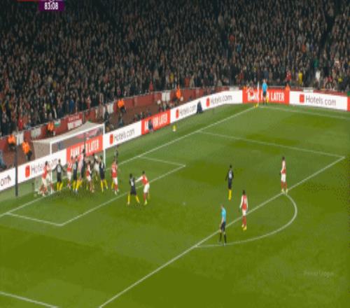 比賽第18分鐘,阿森納通過任意球打出了本場比賽的第一次威脅進(jìn)攻: