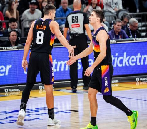 太陽本賽季能夠打出遠超預期的表現(xiàn),愈發(fā)成熟的布克功不可沒,他在牽制防守后的傳球,是太陽能夠打出流暢整體進攻的基石,此役在布克無法出戰(zhàn)的情況下,太陽只能靠個人強打去終結(jié),雖然前兩節(jié)狄龍和阿倫得分都達到了兩位數(shù),但是全隊總的助攻只有個位數(shù),這也導致了命中率不高,只能帶著10分的劣勢,回到了中場更衣室。