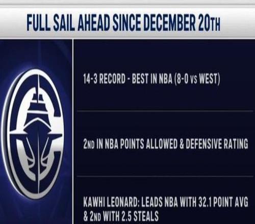 在賽前的預(yù)熱節(jié)目中,轉(zhuǎn)播方曬出了快船隊(duì)“北伐”期間的出色數(shù)據(jù)。在去年12月20日時(shí),快船隊(duì)仍以6勝21負(fù)的戰(zhàn)績(jī)位居西部墊底區(qū)域,一度排名西部倒數(shù)第一。但在那時(shí),快船主帥泰倫-盧表示快船將在賽季剩余的55場(chǎng)常規(guī)賽中以“35勝20負(fù)”的戰(zhàn)績(jī)收官,這也被球迷稱之為“北伐宣言”。